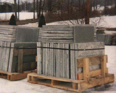 Flat stone, cut to size. Typically 1" and 1 1/2" thickness. Available in other thicknesses. Varying color.